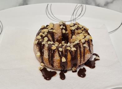 Excellent desserts, including a good selection of ice creams and freshly cooked donuts - small place but perfectly formed.