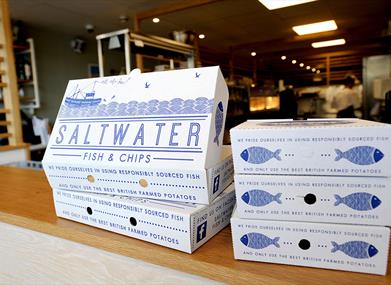 You can enjoy Saltwater Fish Restaurant and Takeaway in the comfort of our spacious, recently refurbished, 50-seater restaurant with modern and pleasant décor. You may prefer to choose the take away option to enjoy your delicious fish lunch or supper, take in the attractive views and Mediterranean-style mild climate. Alternatively, we now offer a convenient delivery take away service straight to your door, especially useful if you are enjoying a self-catering holiday on the English Riviera.