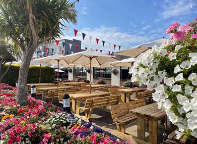 Take in the spectacular views from Babbacombe Downs through to Golden Cap in Dorset, in our award-winning beer garden