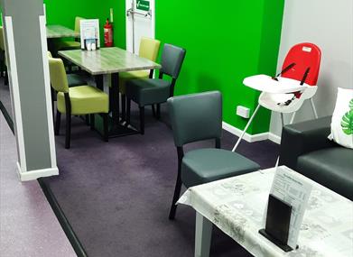• Indoor seating with high chair, The Coffee House, Fore Street, St Marychurch