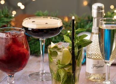 Stay hydrated with your favourite tipple from our fantastic drinks menu. We have a range of wines, ciders, beers (including gluten and alcohol-free options), cocktails, soft drinks, and much more!