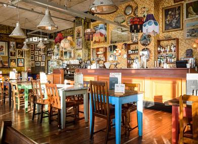 There is an extensive selection of coffee and loose-leaf teas, cakes & pastries, freshly squeezed juice and a great selection of wines, draught beers and cocktails. The interiors are comfortable, inviting and a bit eccentric with a strong use of reclaimed and antique furniture and fittings. The photos, the great majority of which feature Dave’s grandparents and our very own MD, are fun, distinctive, and sometimes a little weird.