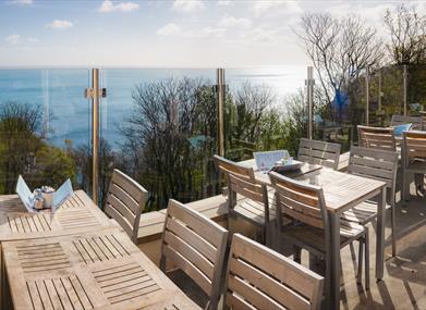 Situated in an unrivalled position on the cliff edge in Babbacombe; you can enjoy our homemade cakes, scones, sandwiches, Panini, oven baked Jacket potatoes and daily specials. The views from inside are simply breath-taking and on street parking outside is plentiful. We also have a large outside terrace with views over Lyme and Babbacombe bay as far as Lyme Regis. We have a selection of newspapers available every day and free Wi-Fi is available throughout.