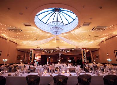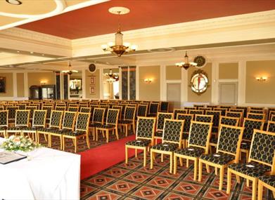 The Devonshire Suite stands as an expansive space, adorned with an intricately designed ceiling and breathtaking glass chandeliers. Complete with a dedicated bar and a purpose-built stage, this room is an ideal choice for exclusive private functions.