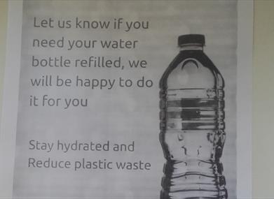 Offering a free water bottle refil to reduce plastic waste.