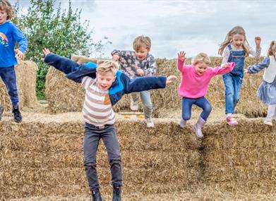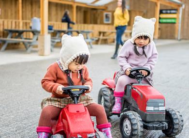 Outside, the adventure continues with a giant straw bale maze complete with tunnels and slides, plus ride-on mini tractors, playhouses and a messy kitchen where kids can “cook” up a truly revolting feast with mud and imagination!