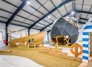 Our inspirational indoor Play Barn is where the outdoors comes inside! Designed for children aged 2–12yrs, the barn is split into exciting zones themed around Torbay’s natural landscapes – coast, countryside and woodland. There are cliff faces to scramble up, a giant shell to climb inside, slides to swoosh down, even a shipwreck to explore. It’s imaginative, physical play that encourages creativity and active fun, whatever the weather.