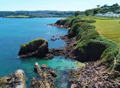 Oyster Cove is an attractive beach which is very popular with local people. The beach is located along the South West Coast Path to the South and is accessed via a set of steps from the Coastal Path above. It is one of the coves that make up the local area known as "Three Beaches". At low tide, there are many rock pools to explore.