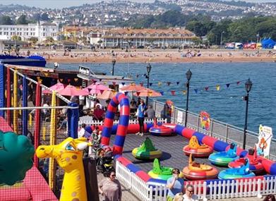 Paignton Pier offers fun for all the family every day of the year with amusements, trampolines, mega slides, ten pin bowling, rides, orbiter dodgems, cafe, ice creams, shops and much more. Dogs are also welcome on a lead.
