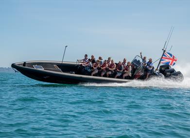 Our award winning vessel Raptor offers a 30 minute coastal trip and is the ultimate RIB Ride. Mixing up speed with various stops along the coast - its guaranteed fun !! 900hp outboards offer the most astonishing accelleration. What better way to see the bay.