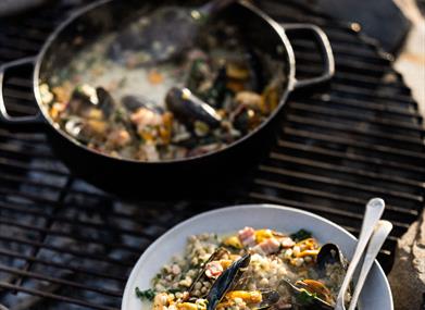 Gill Meller is a chef, award-winning food writer, teacher and advocate for real cooking. Based in Lyme Regis, Dorset, Gill’s cooking is a reflection of his surroundings, he takes inspiration from the landscape, the seasons and the community of farmers, growers and fisherman that live and work around him. Gill’s approach to cooking encourages people to think more about how their food is produced, where it comes and how what we eat affects the world around us. His passion for cooking extends beyond the kitchen. Gill has written extensively about the joys of outdoor cookery and how making a simple fire and “cooking something good to eat over it” can help us connect to a more natural, mindful way of life. Gill appears frequently on Channel 4’s ‘River Cottage’ and has worked closely with the River Cottage for over 15 years, regularly teaching at Park Farm (River Cottage HQ) and inspiring students to grow, source and cook food in ways that enhance their lives. He has a regular column in delicious magazine and has contributed recipes to titles such as The Guardian, The Telegraph, Waitrose Food. He has also appeared on BBC Radio 4’s The Food Programme. Published by Quadrille, Gill’s first book, Gather, won the Fortnum & Mason award for Best Debut Food Book in 2017 and was shortlisted for the Andre Simon Award and Guild of Food Writers Award the same year. Time: a year and a day in the kitchen was published in September 2018 and was nominated for both Guild of Food Writers’ General Cookbook Award and Food & Travel magazine’s Cookbook of the Year Award. Root, Stem, Leaf, Flower - how to cook with vegetables and other plants was published in 2020 and was nominated for the Guild of Food Writers’ General Cookbook Award. His latest cookbook Outside - Recipes for a wilder way of eating is out now.