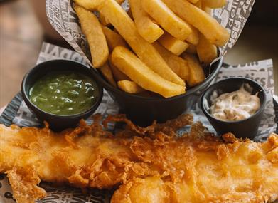 Enjoy our award-winning fish & chips, freshly prepared and served with all the trimmings, perfectly paired with a glass of chilled prosecco — all for just £26 per person.