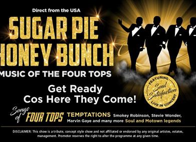 SUGAR PIE HONEY BUNCH Tribute to the Motown Legends, THE ONLY AMERICAN TRIBUTE SHOW CELEBRATING THE MUSIC OF THE FOUR TOPS AND OTHER LEGENDARY MOTOWN ARTISTS TOURING THE UK.